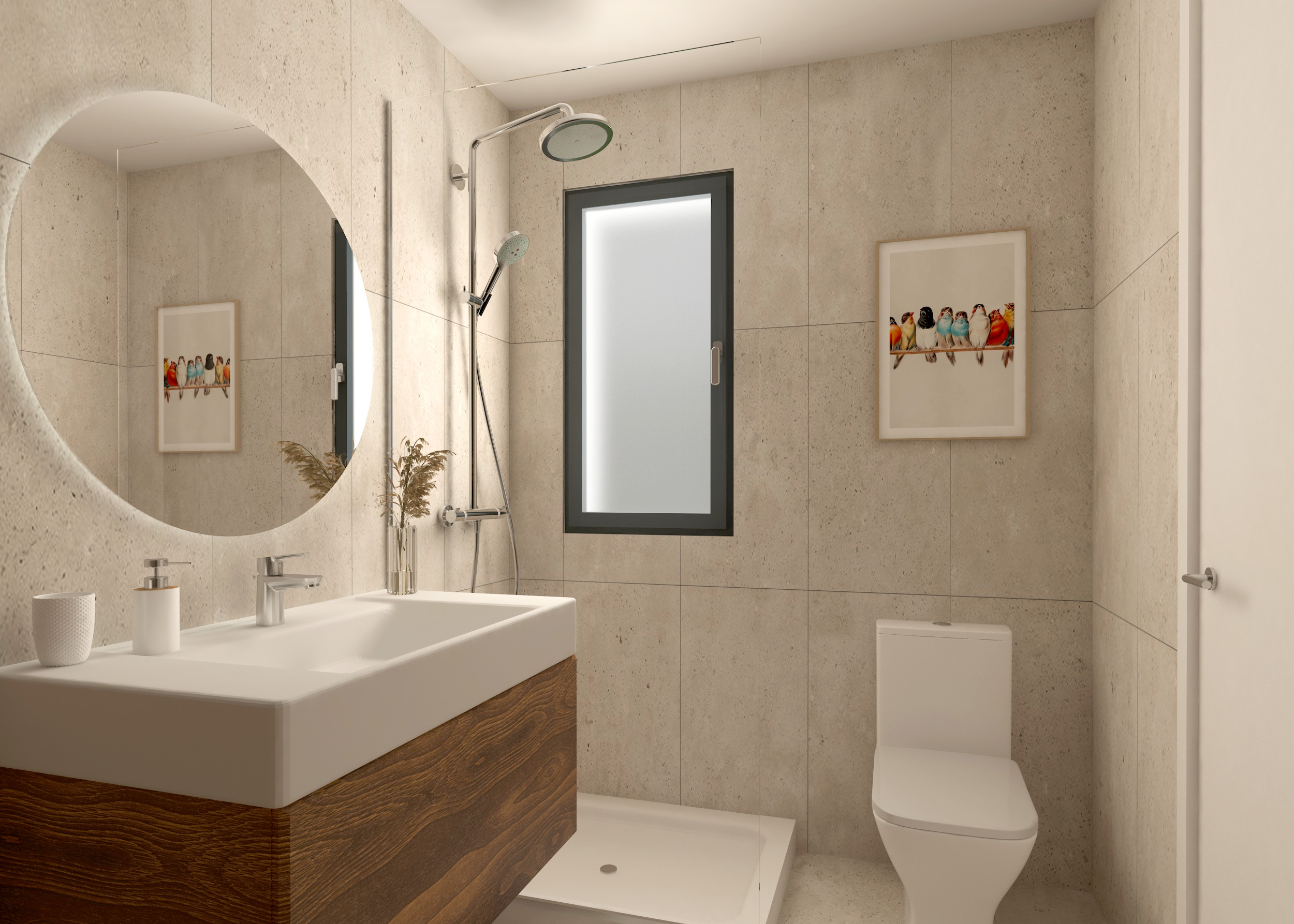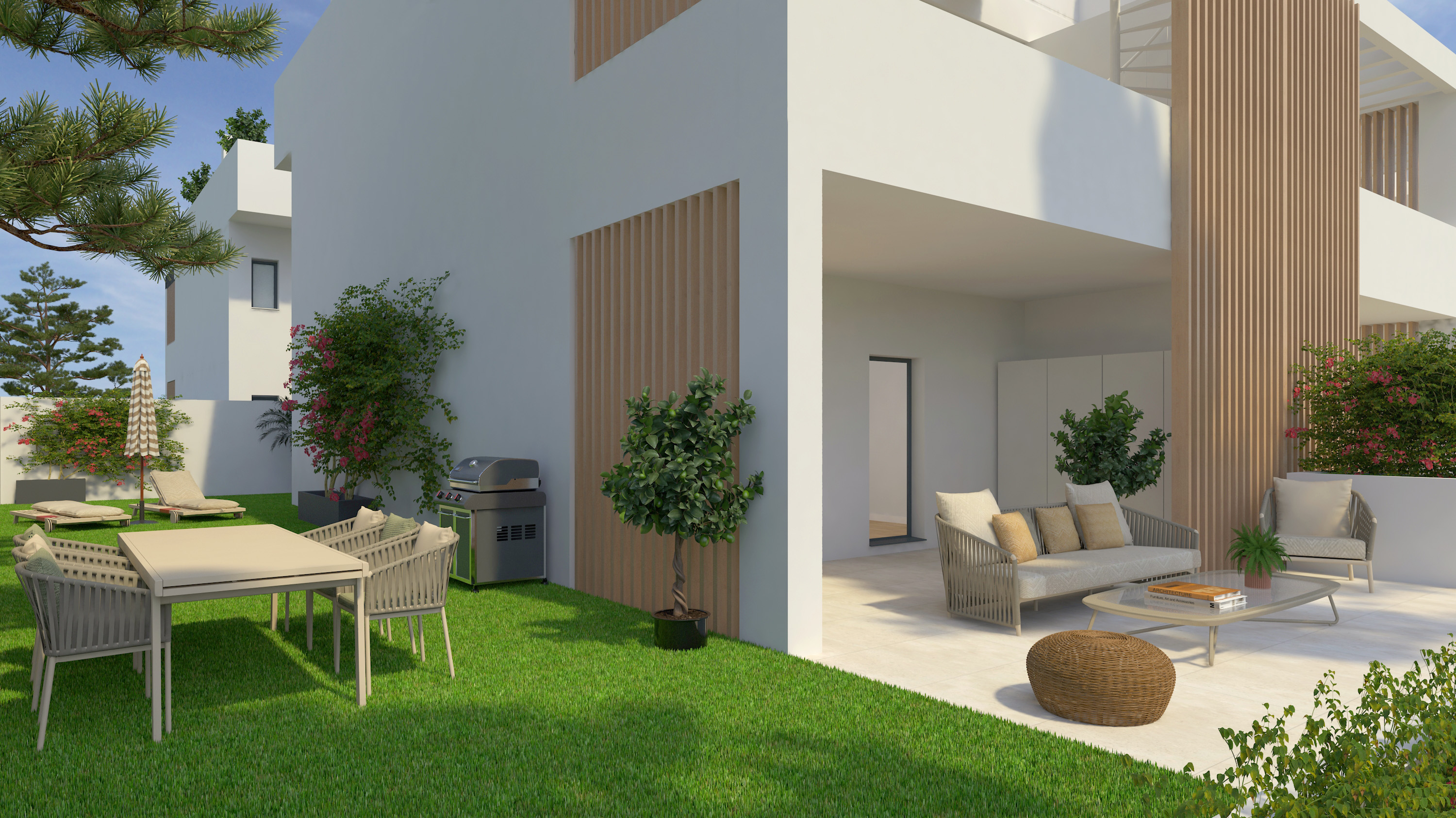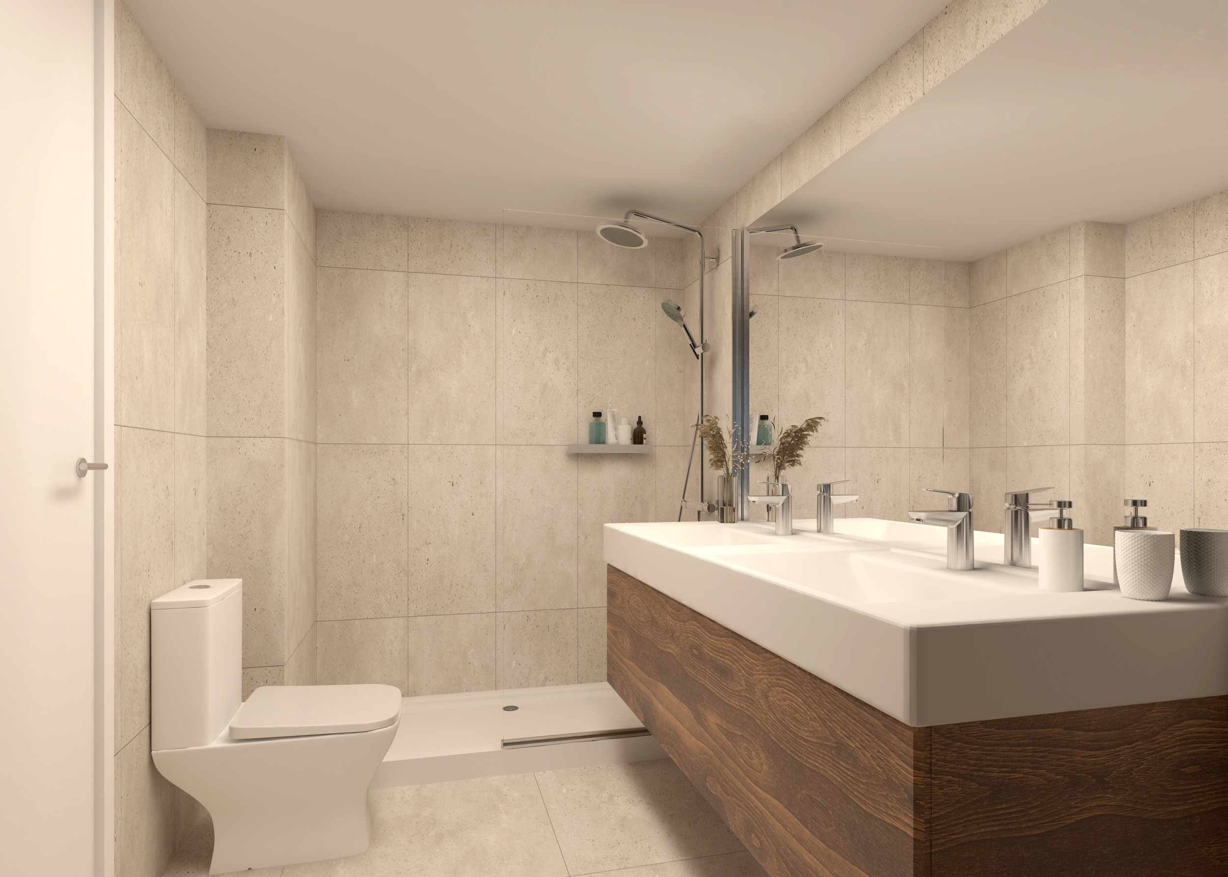 Este nuevo edificio alberga 48 viviendas de dos dormitorios y diseño moderno distribuidas en dos plantas sobre rasante. Las viviendas en planta baja cuentan con amplias terrazas y jardines privados, ideales para disfrutar del aire libre durante todo el año. Las viviendas de planta superior destacan por sus generosas terrazas con vistas panorámicas.